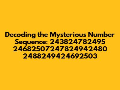 Hey guys! Ever stumbled upon a sequence of numbers that just makes you scratch your head? Today, we're diving deep into one such enigma: 243824782495 24682507247824942480 2488249424692503. What could it possibly mean? Is it some secret code, a random string, or perhaps a key to unlocking a hidden treasure? Let's break it down and see if we can make sense of this numerical puzzle. We'll explore different angles, from mathematical interpretations to potential real-world applications, all while keeping it fun and engaging. So, buckle up and get ready for a numerical adventure! We will dissect each segment of the number, assess potential patterns, and evaluate different decoding methodologies. Could it be a date, a series of coordinates, or even a cryptographic key? Let's find out!
