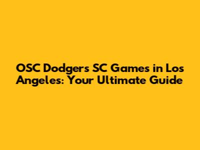 OSC Dodgers SC: Your Guide To Games In Los Angeles
