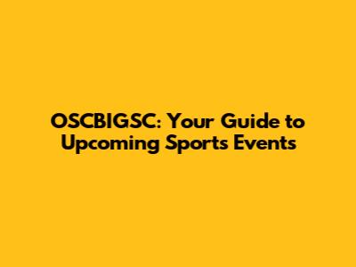 OSCBIGSC: Your Guide To Upcoming Sports Events
