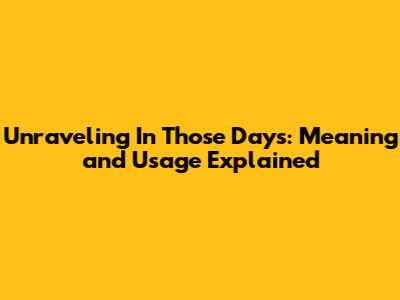Unraveling 'In Those Days': Meaning And Usage Explained